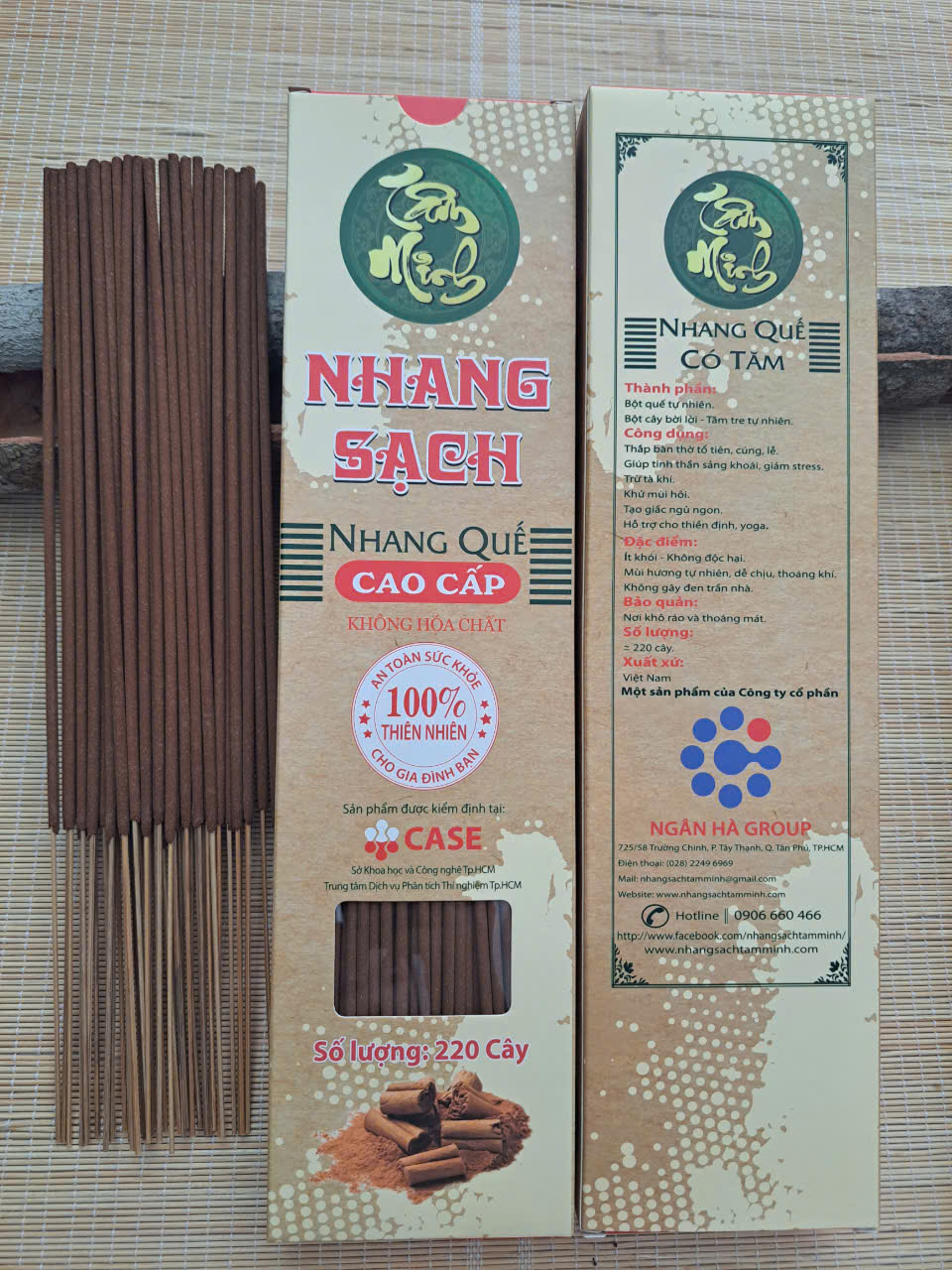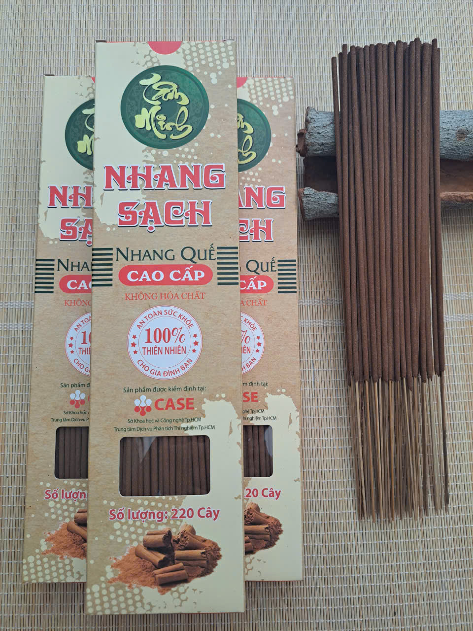 Nhang Quế Cao Cấp 30cm (Hộp 220 cây) của Nhang Sạch Tâm Minh được sản xuất 100% tự nhiên, đảm bảo không hóa chất, sản phẩm đã được kiểm định bởi Trung Tâm CASE.